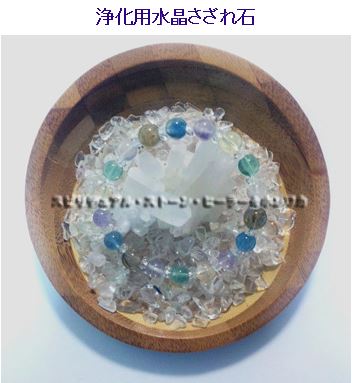 さざれ石水晶の上に、パワースポット・ブレスレットを置いておくことで、お部屋の浄化効果が期待できます。